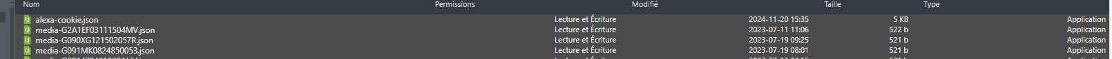 par contre le fichier alexa-cookie.json est absent lors de la réinstallation et ne se crée pas lors de la génération manuel du cookie malgré le pouce levé