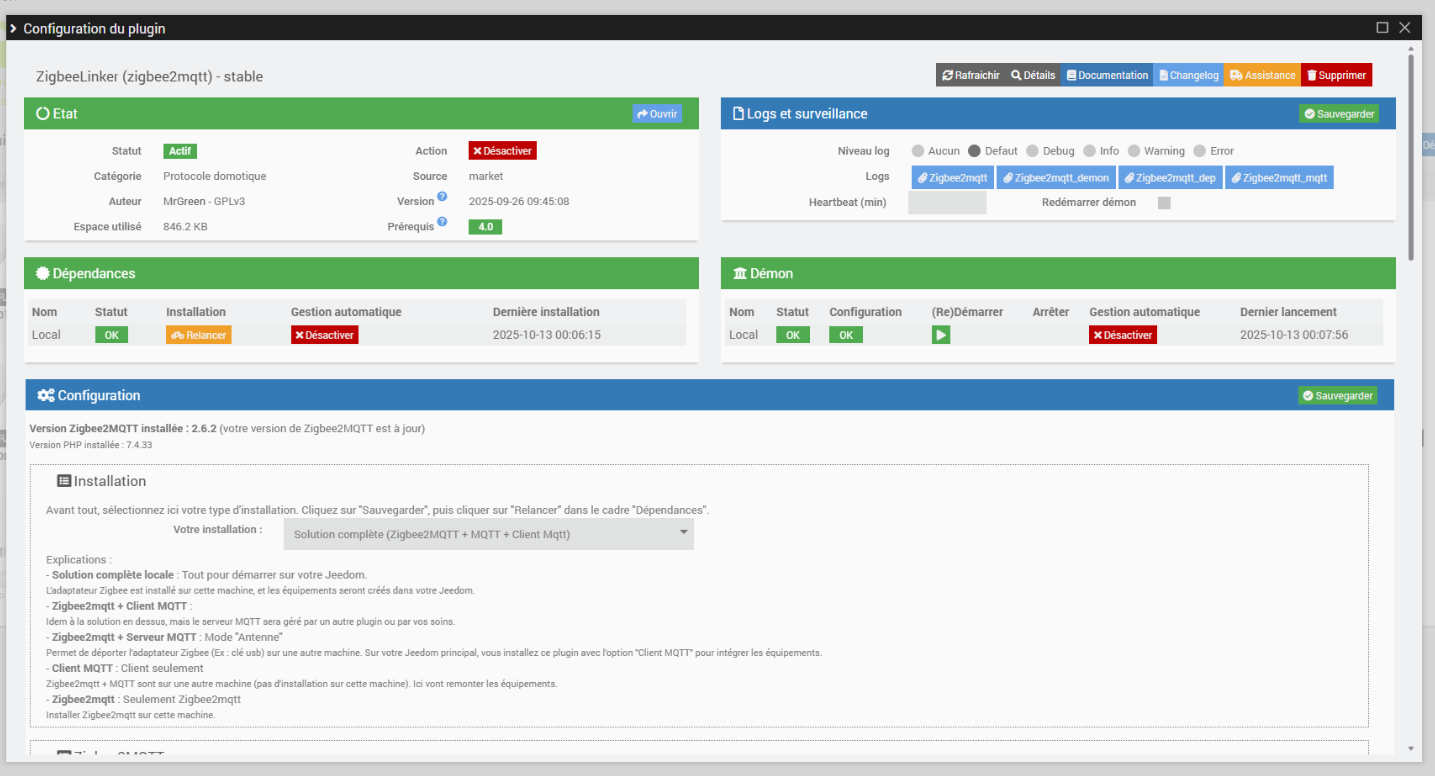 mais si Zibeelinker, votre installation : Solution complète (Zigbee2mqtt + (Serveur) MQTT + Client MQTT)