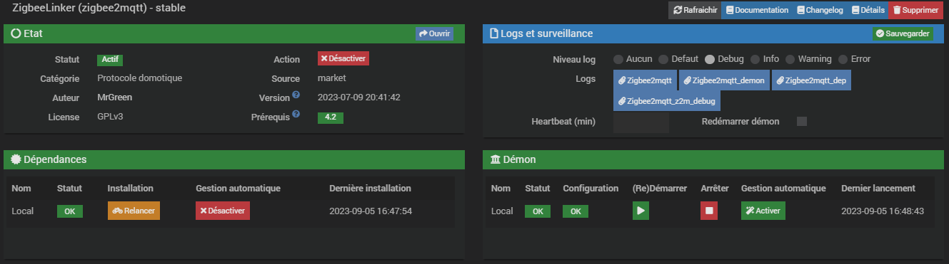 [2023-09-08 19:51:06]INFO : ##### Démarrage du service Zigbee2MQTT #####