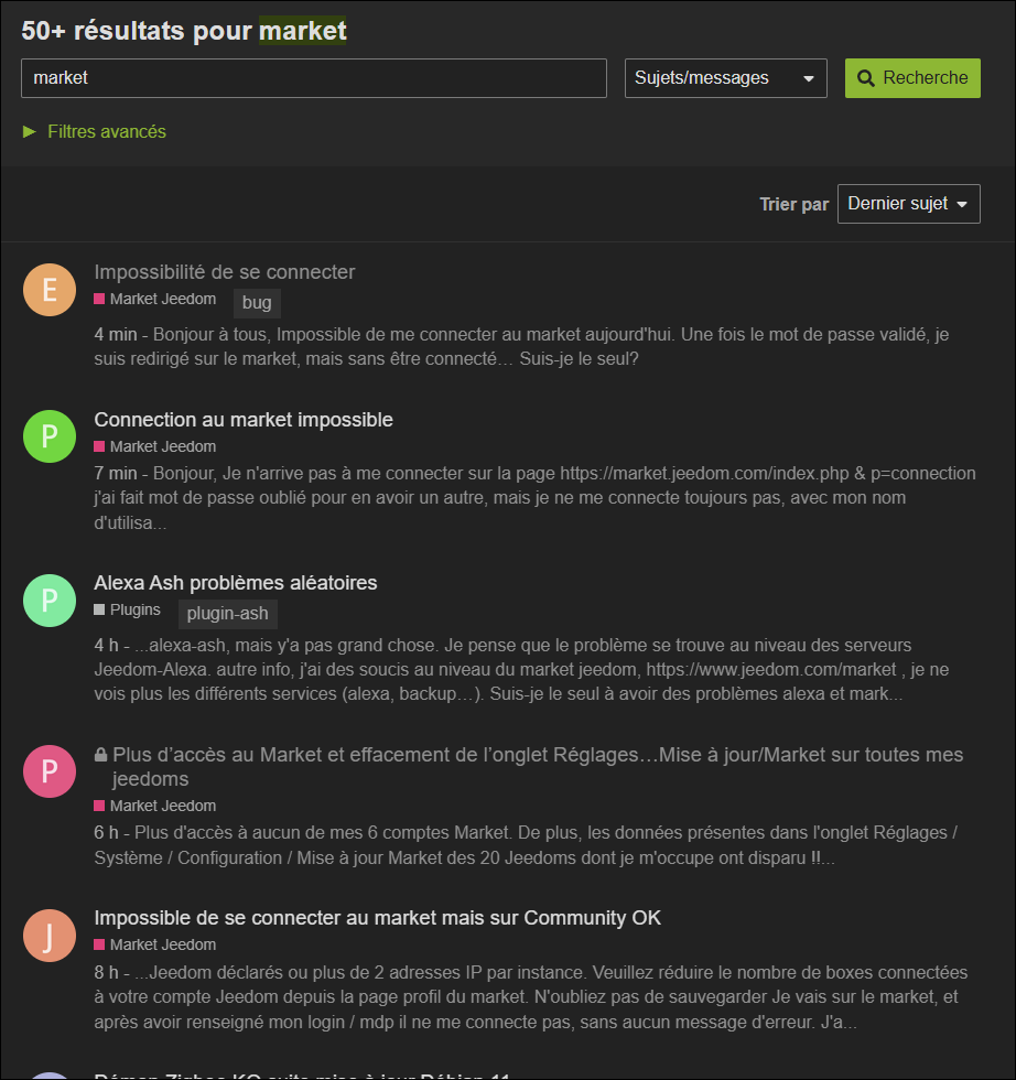 Edit 18h45 : Le problème est maintenant corrigé par la Team Jeedom (bascule sur des nouveaux serveurs)
