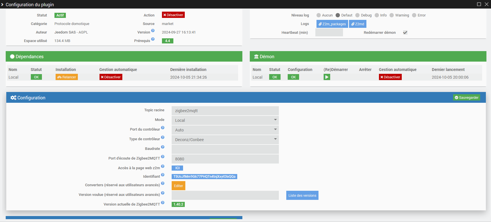 Voici la page de configuration de JeeZigbee: