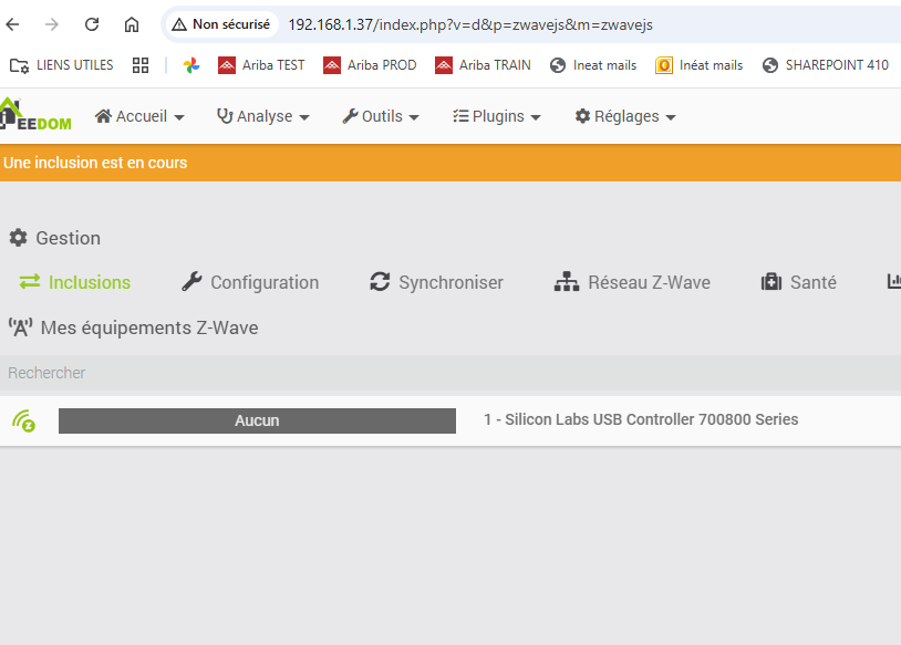 Je passe par le menu Protocole Domotique > Z-wave JS > inclusions.
