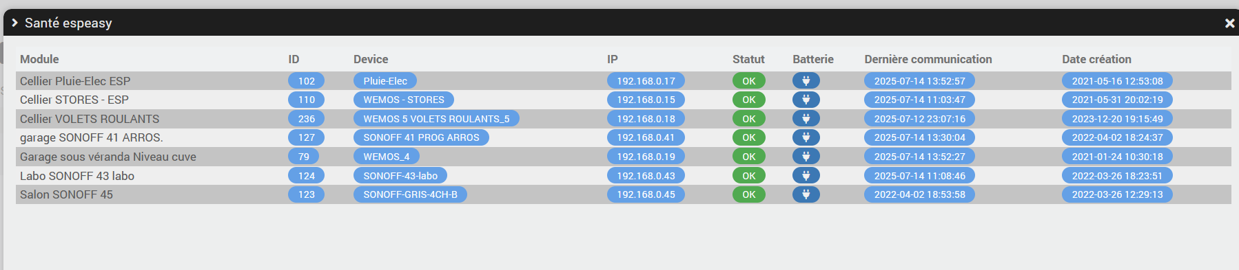 J’utilise le plugin ESPEASY. Les modules déjà en place sont reconnus et leurs valeurs remontent sans problème. Cependant je rencontre 2 difficultés :