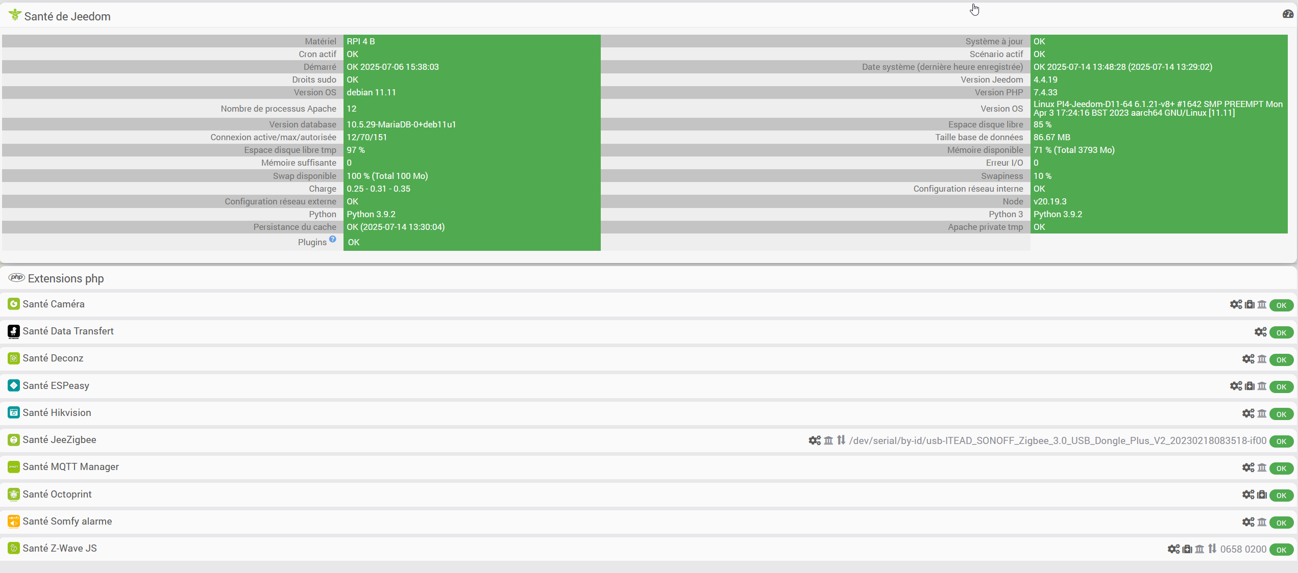 Dernièrement j’ai remplacé mon vieux PI par un PI4B et transféré la sauvegarde Jeedom 4.4.19.