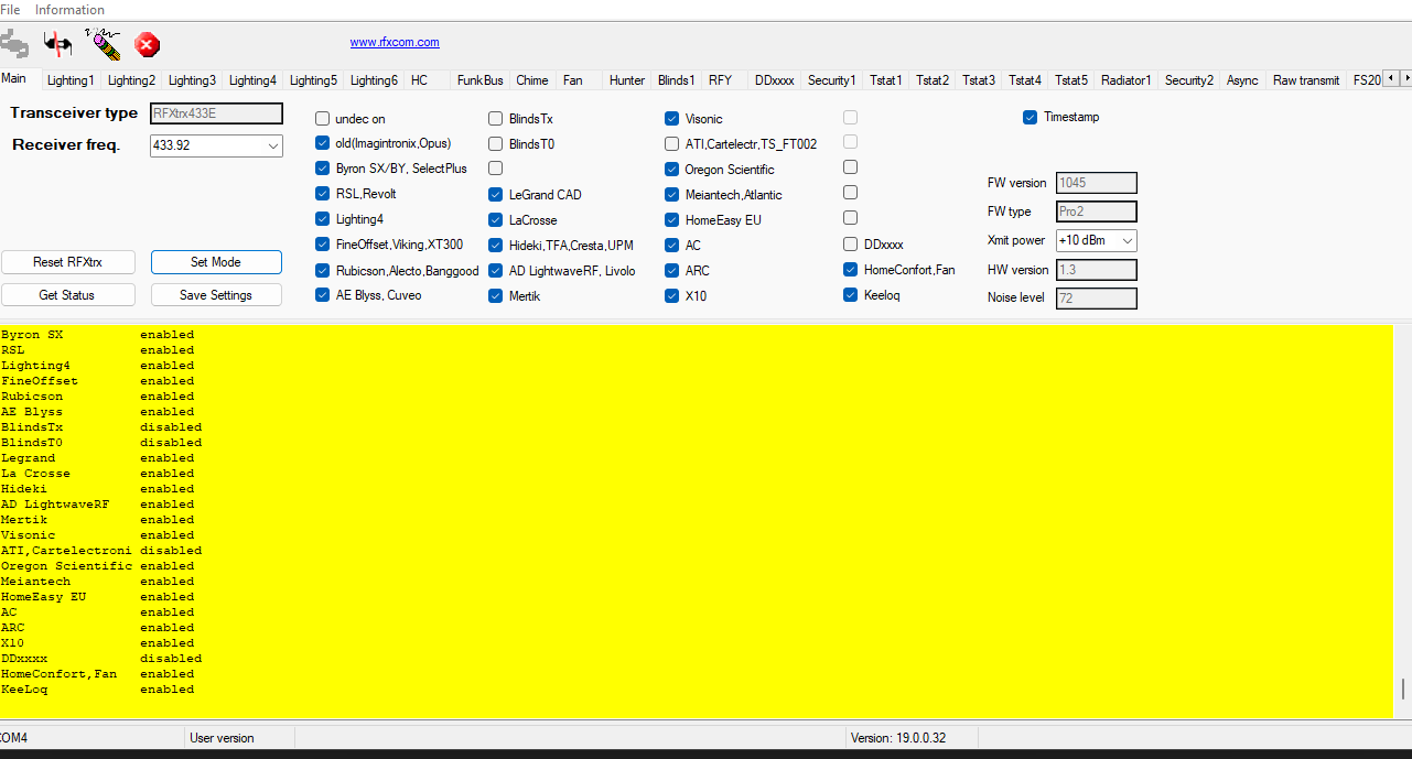 Quand tu dis que je dois mettre les protocoles, je les ai mis sur le RFXmanager et lancé set mode.