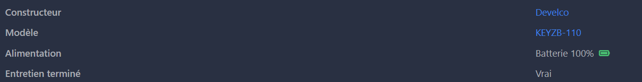Juste deux infos qui ne remonte pas, c’est la batterie qui reste depuis l’installation à 100% et le voltage à 5100.