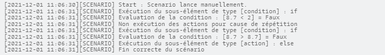 Troisième étape la condition est validée, mais le scénario ne s’exécute pas pour cause de répétition.