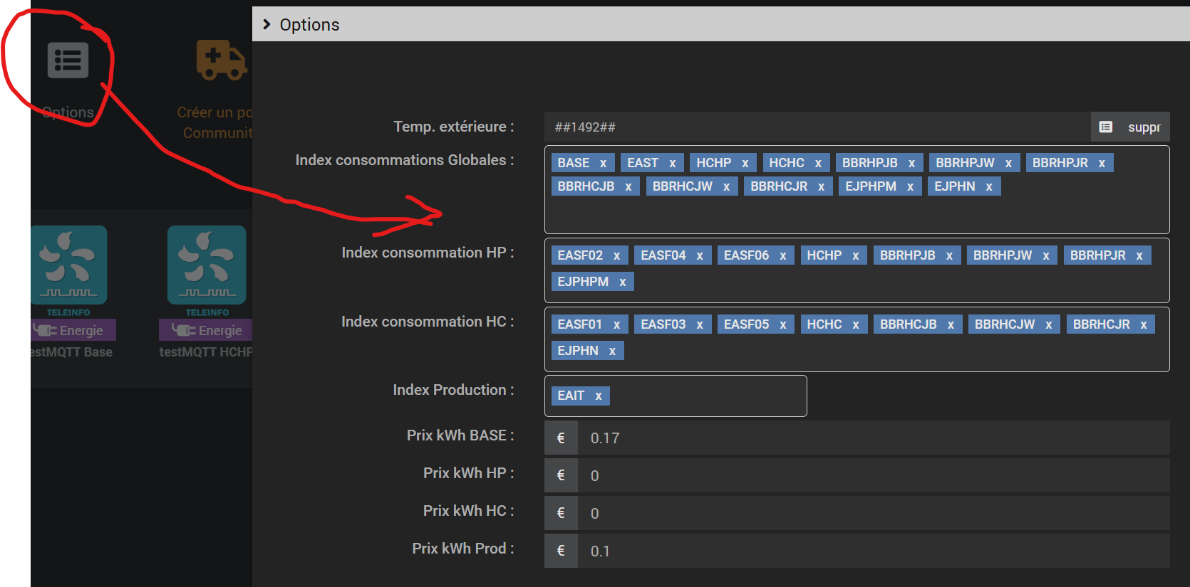 Compteur #1 - Mode : Consommateur - HPHC? : pas de HPHC ancienne formule - Nouveaux index? : Utilisation new index