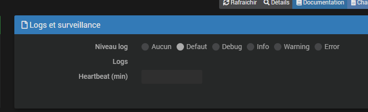 Il est possible dans le plugin de gérer le niveau de log, cela est très utile pour pouvoir analyser en cas de problème (ce qui m’a bien servi durant ma migration de mes Raspberry vers le NUC).