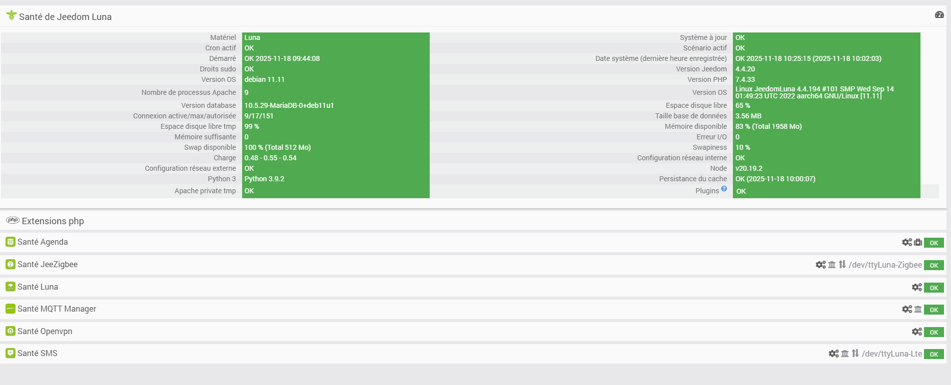 le plugin démon est OK mais souvent ne permet pas d’envoi des sms, obligé de relancer les dépendances de redémarrer la box pour que l’envoi de sms fonctionne.