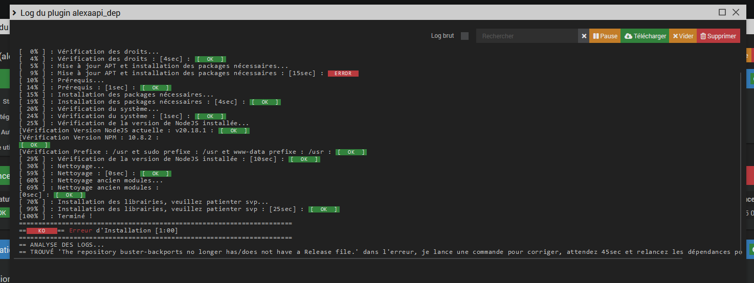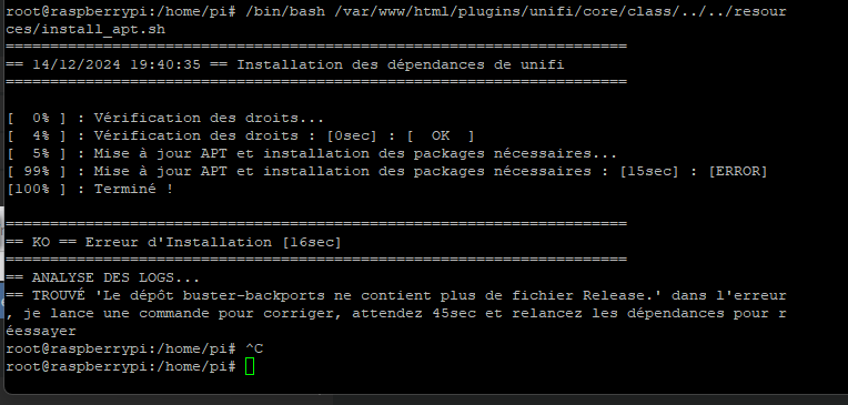 Après cette modification, les dépendances de Unifi et Alexa se sont installées correctement.