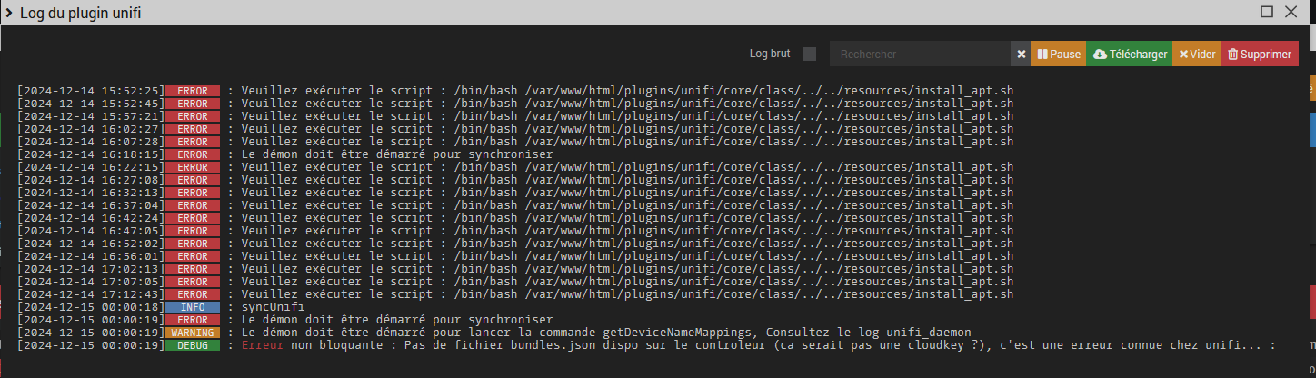 Je lance la ligne de commande car c’est ce qu’il me demande dans le unifi.log
