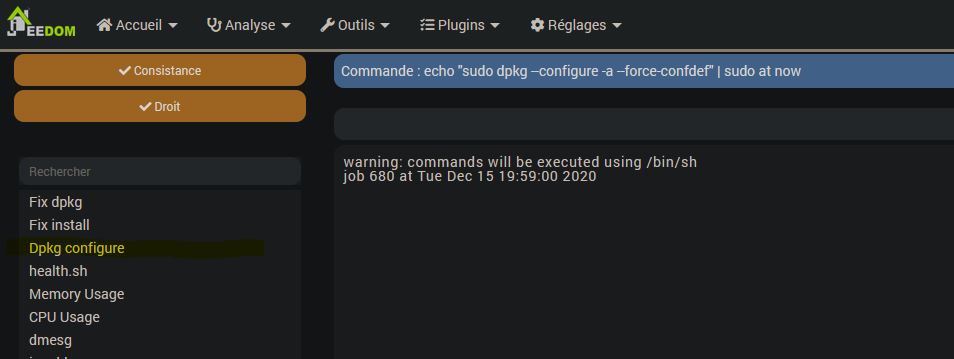 Je ne connais pas trop le fonctionnement SSH, j’ai donc voulu choisir la deuxième option mais je ne trouve pas de menu « Administration ». J’ai fouillé les menus de Jeedom (Accueil, Analyse, Outils, Plugins et Réglages) sans succès.