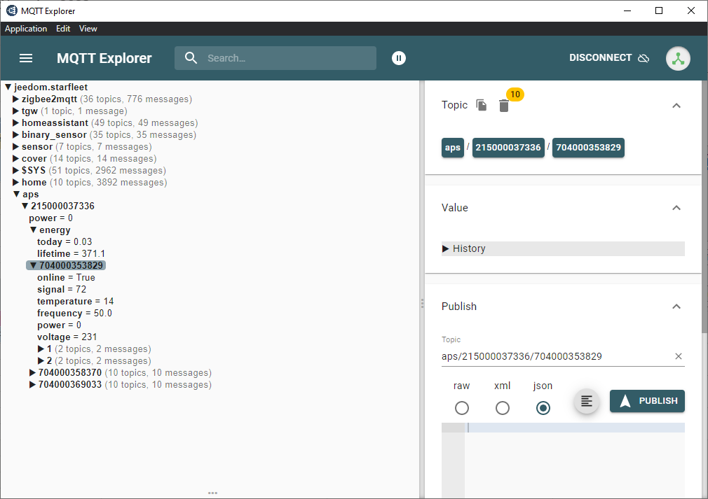 Bien entendu, j’ai configuré pour écouter le topic aps :