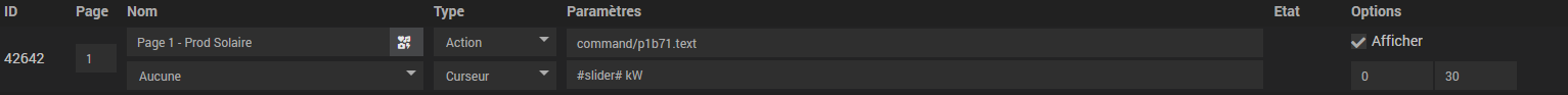 - Action : Depuis Jeedom, on envoie la commande Action nommée « Page 1 - Checkbox Baignoire Commande » avec valeur = 1
