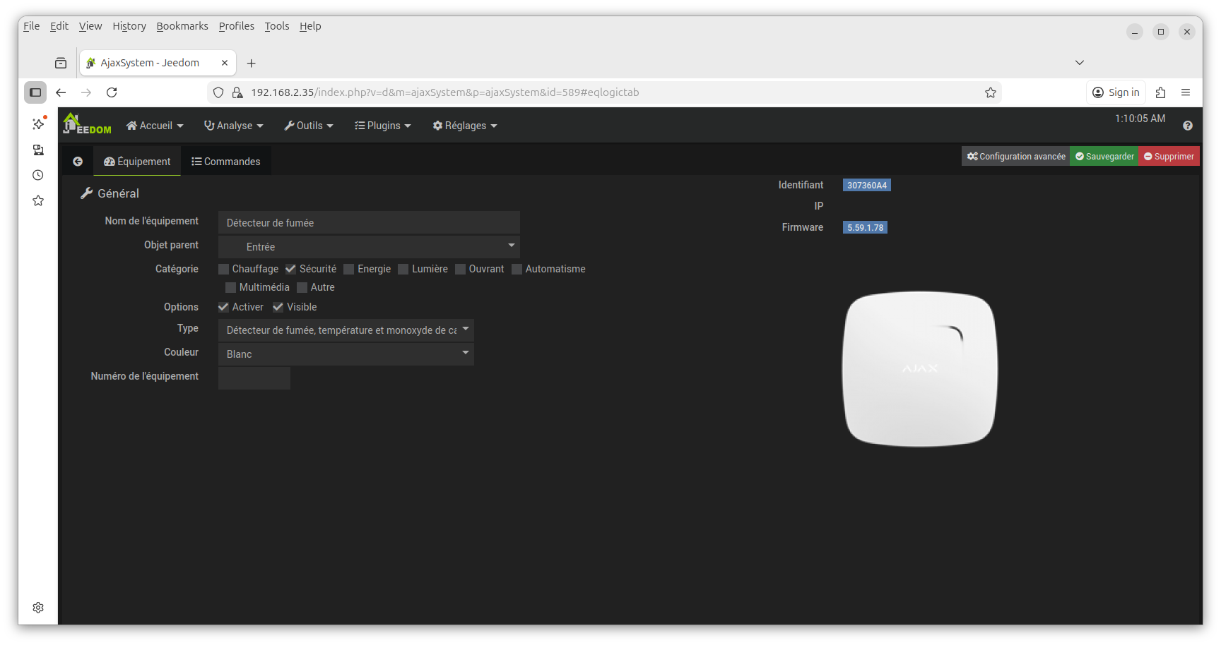 {« id »:« 307360A4 »,« deviceType »:« FireProtect2Plus »,« deviceName »:« D\u00e9tecteur de fum\u00e9e »,« roomId »:« 00000003 »,« groupId »:null,« color »:« WHITE »,« online »:true}