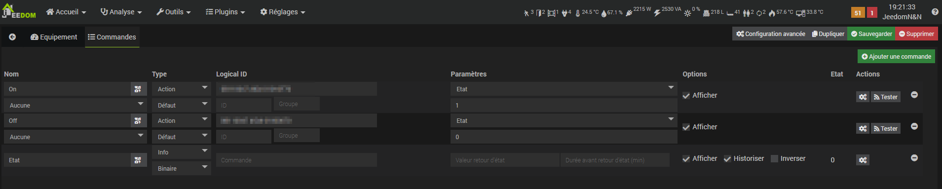 Pour mes périphériques actuels, j’utilise soit l’apprentissage ON/OFF, ça c’est bon, l’interrupteur s’allume bien ou s’éteint.