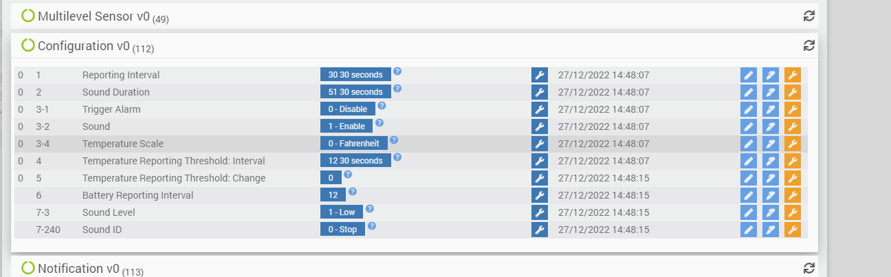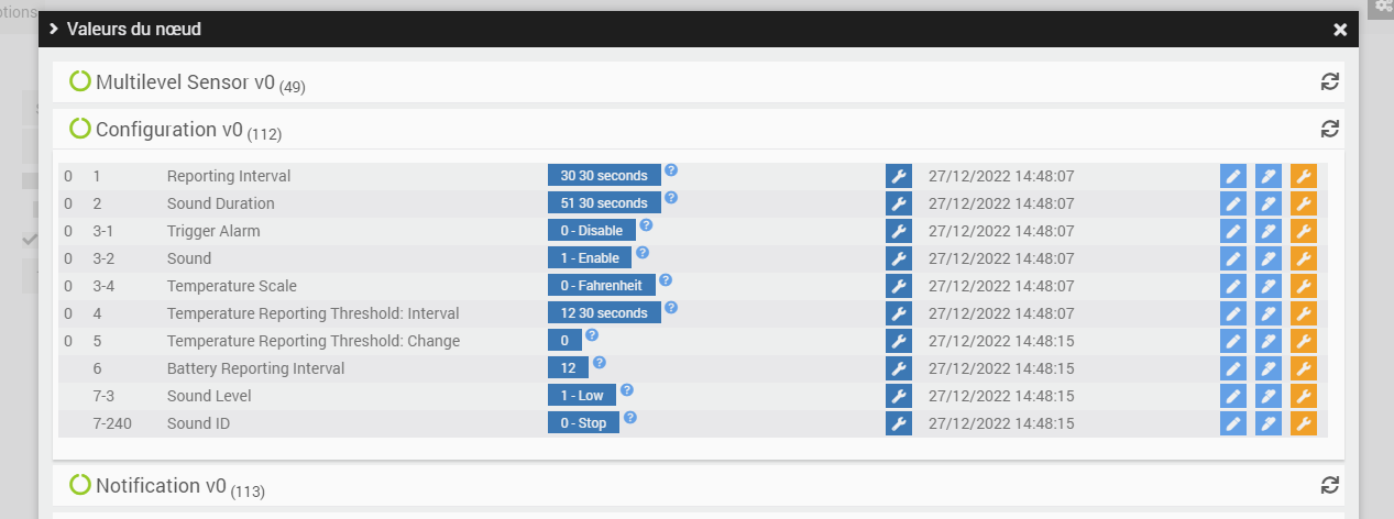 Concernant la température qui devrait remonter, j’ai changer les parametres comme vous me l’avez prescrit. Capot ouvert avec appui sur le bouton inclusion pour la réveiller (elle clignote deux fois) donc je suppose qu’elle se réveille et cela à coté de l’antenne zwave et comme vous pouvez le voir ca bouge pas d’un degré.