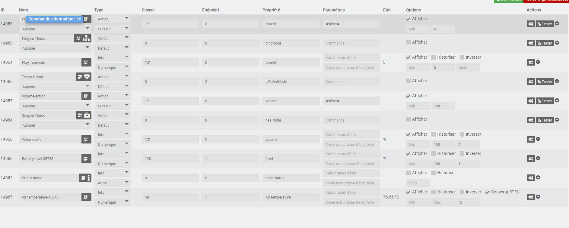 tu montres les valeurs température et batterie de l’onglet valeurs mais dans tes commandes tu montres des commandes de la partie audio.