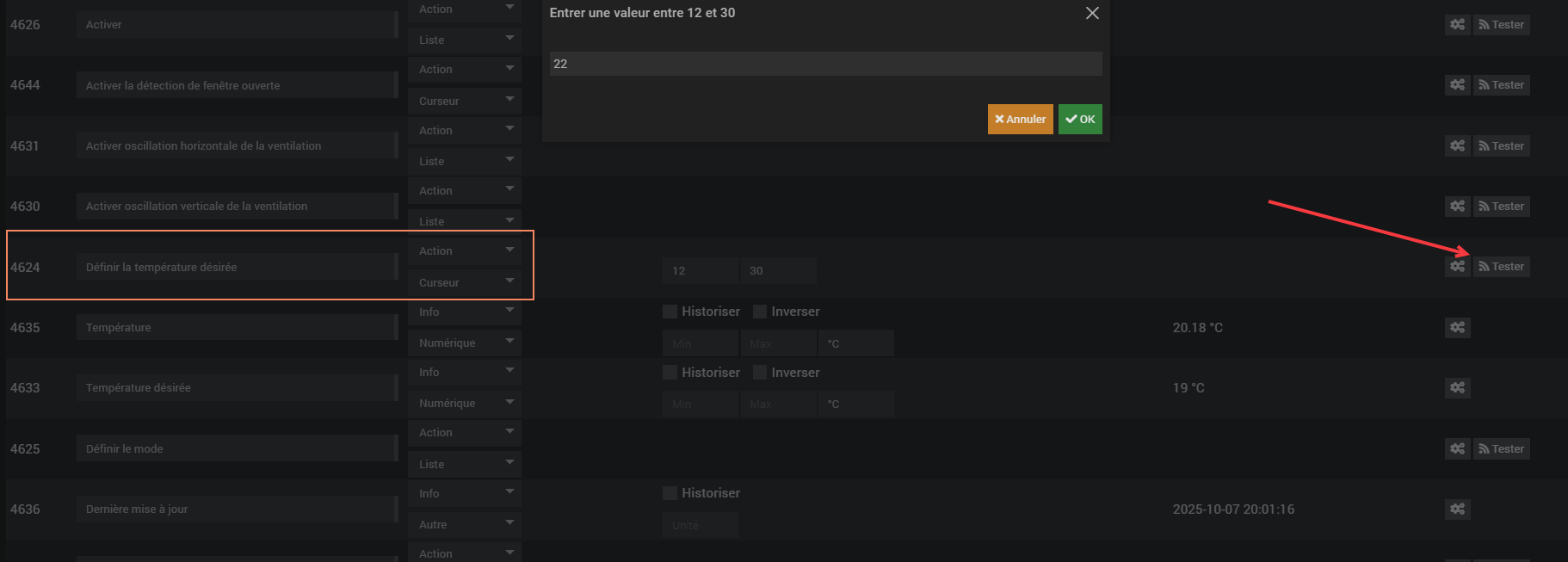 bon je refais ma synchro, effectivement j’ai maintenant une commande curseur mais malheureusement lorsque je demande une température de 22 et que je valide avec ok rien ne fonctionne.