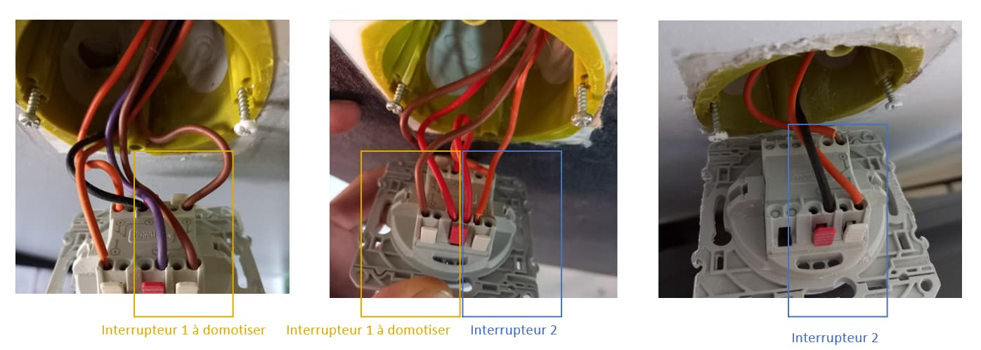 Sur la photo c’est le double interrupteur que je veux domotiser. Un va gérer la lumière de mon couloir et l’autre le vas et vient d’une mezzanine. Pour moi y a pas de neutre, mais c’est juste parce qu’il n’y a pas de fil bleu