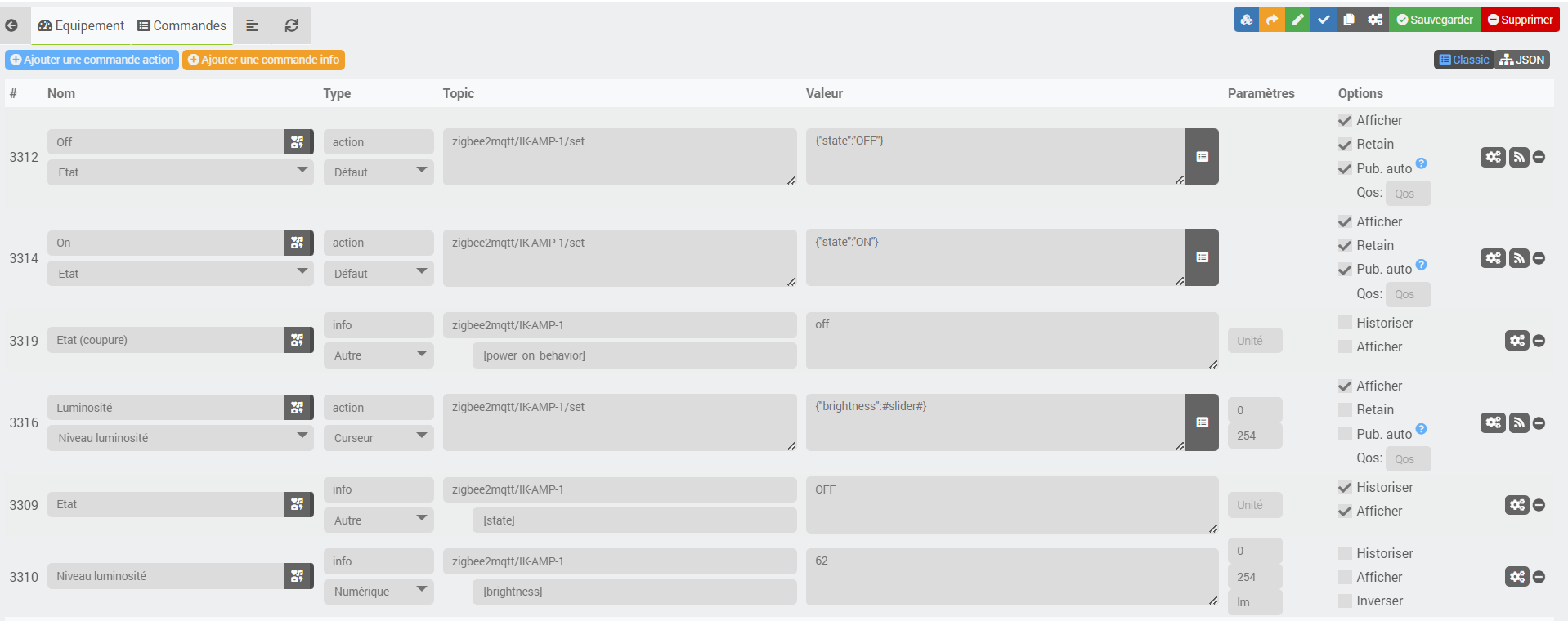 Je recherche à reproduire le même fonctionnement avec ma tuile pour la Tradfri, voici ce que j’ai pour les commandes de l’équipement :