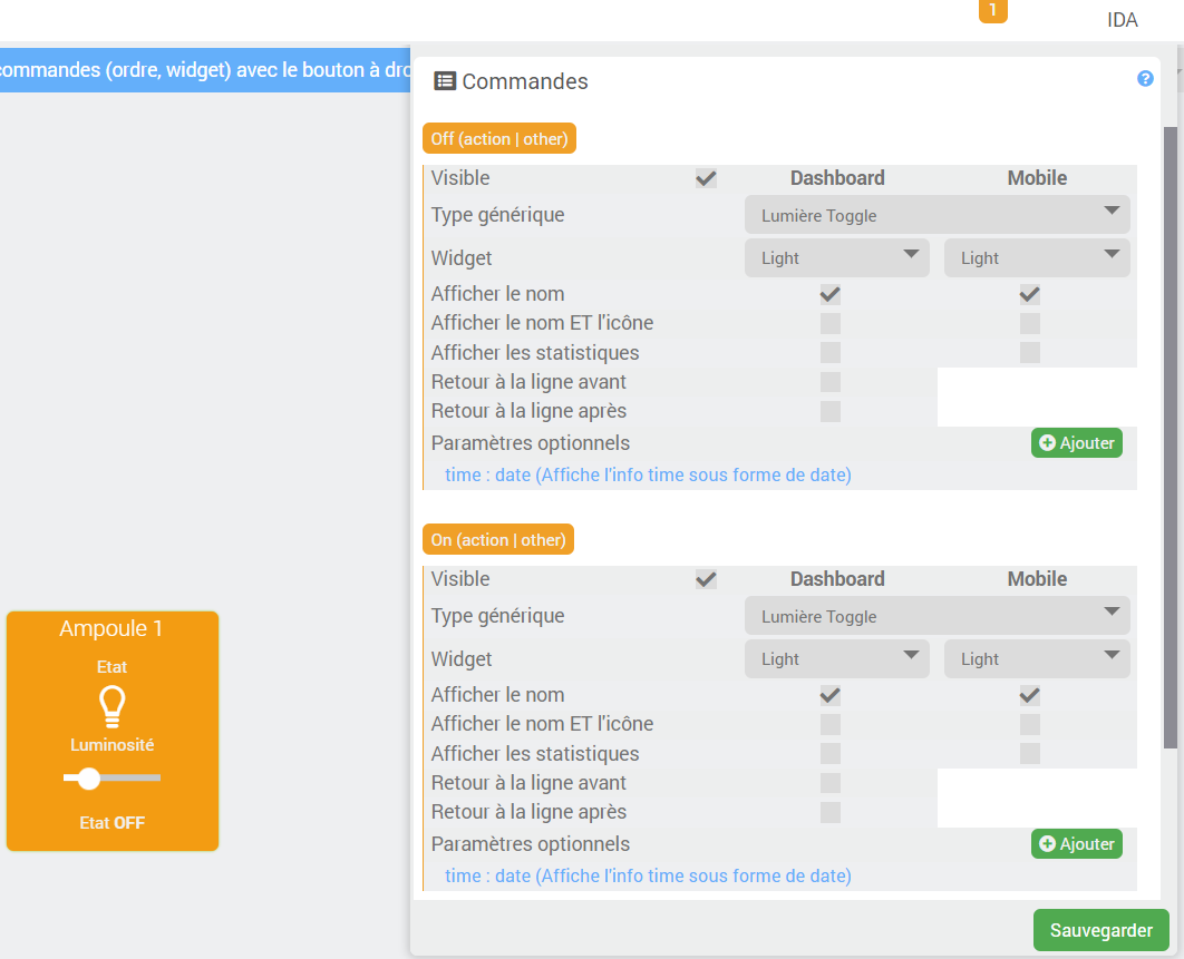 Mon souhait est que la tuile sur mon dashboard permette de réaliser une action toggle on/off de l’ampoule.