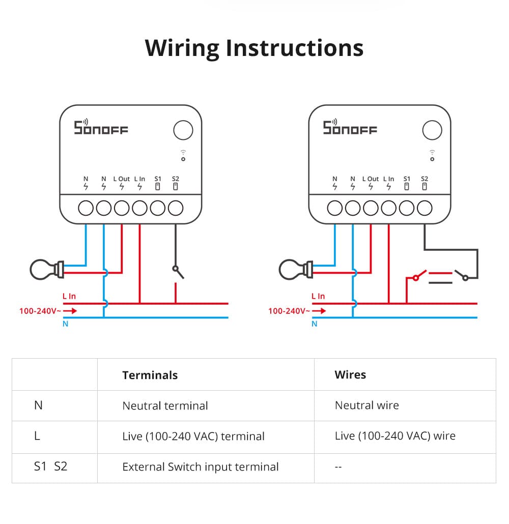 Un câble entre le S2 et le L1 pour que l’interrupteur contrôle le Sonoff.