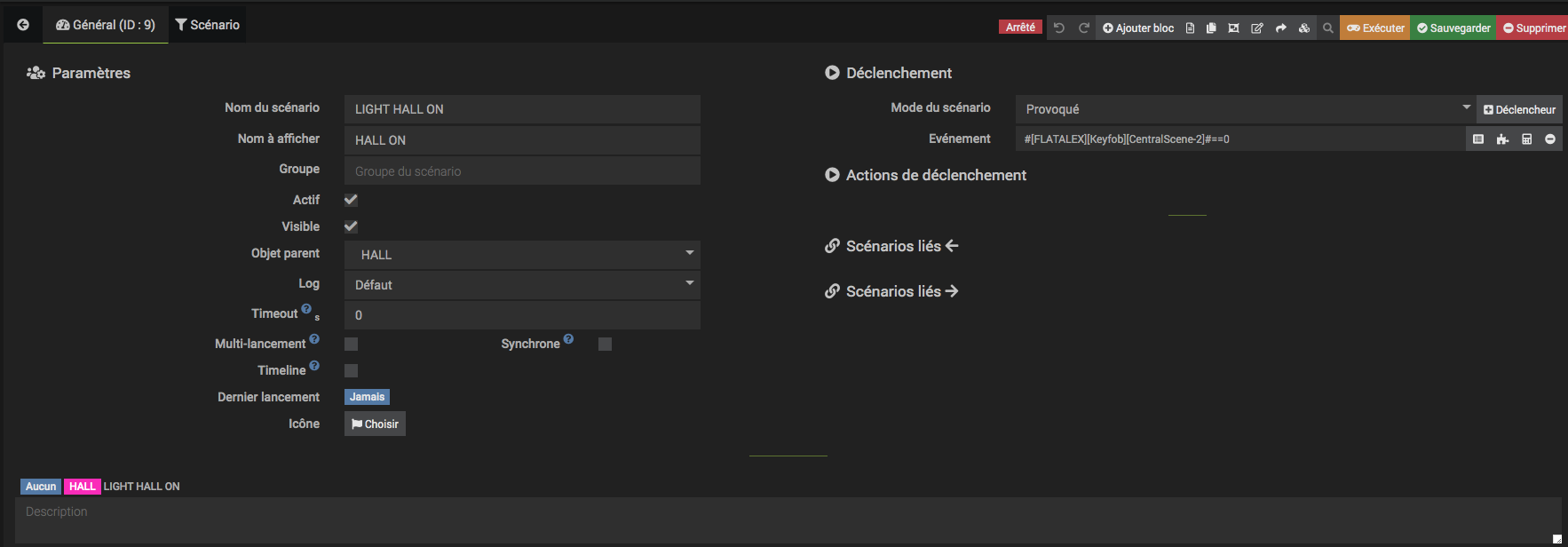 MAIS… des que je les intègre dans un scénario… qu il soit provoqué ou non, impossible d avoir la commande qui aboutie. ça ne déclenche rien du tout.
