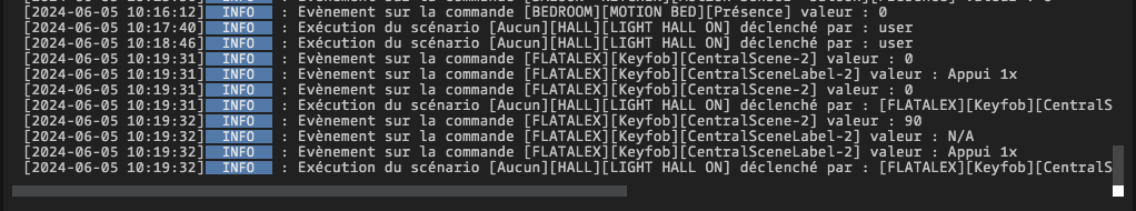 l autre declenchement est provoqué quand je press le boutton sur le keyfob fibaro… ca lance bien le scenario aussi