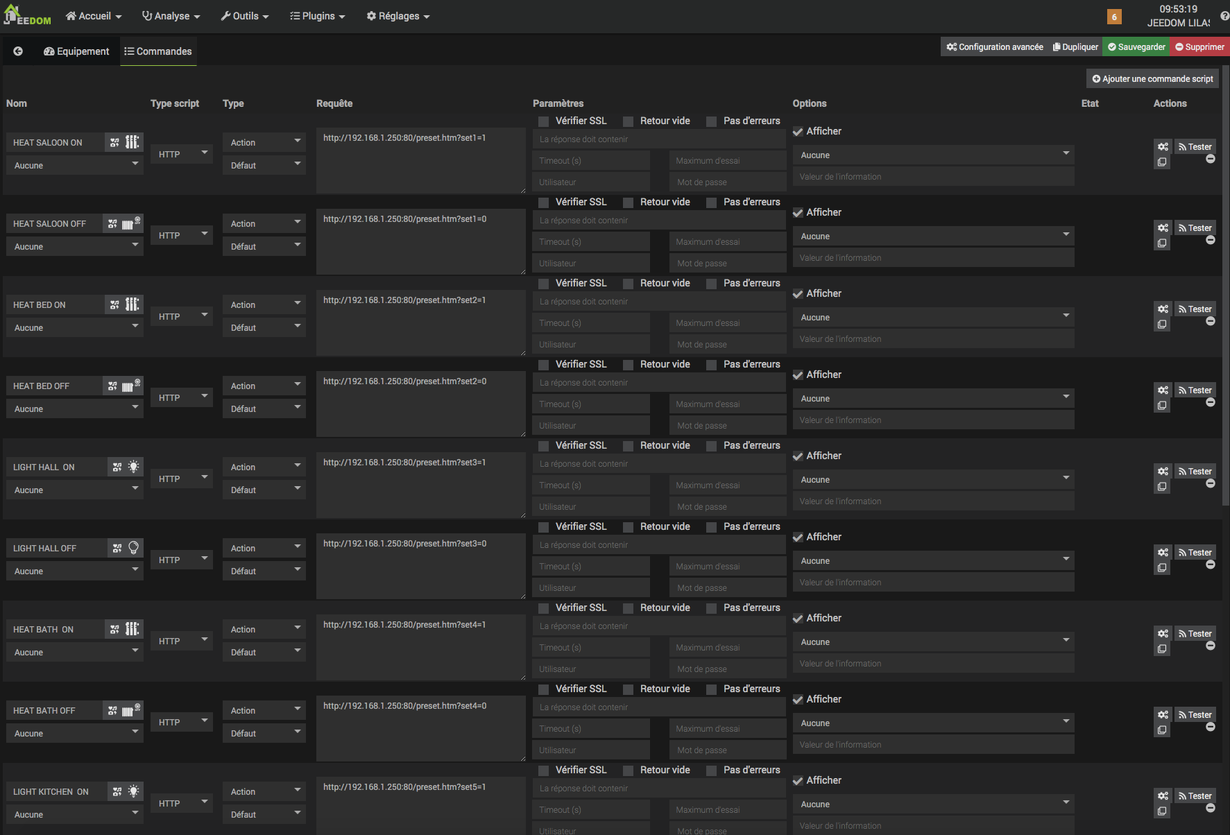 ces meme commandes qui fonctionnent tres bien depuis la tuile du dashboard , ou mem depuis le TEST mode dans la commande list du script