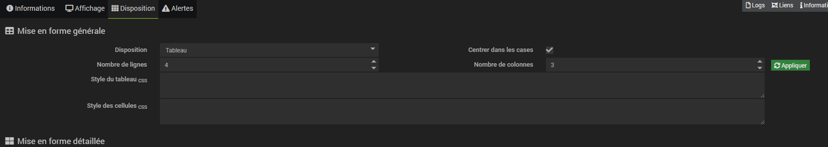 Le tableau reste verrouillé plus ou moins sur le haut de la tuile et il y a un bandeau noir sur le bas (on le voit quand je redimensionne verticalement la tuile)