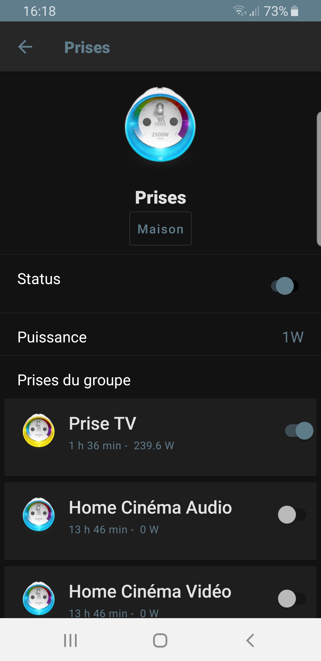 C’est soit 0W soit 1W pour 1 prise allumée, 2W pour 2…