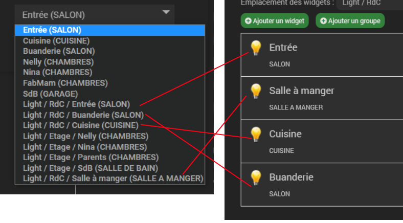 Alors dans la liste deroulante si tu regardes bien il y a toutes les lumières mais on ne retrouve pas salle à manger comme on retrouve par exemple entrée en double (dans la pièce mais aussi dans la liste au début) c’est ce que je ne parviens pas à expliquer