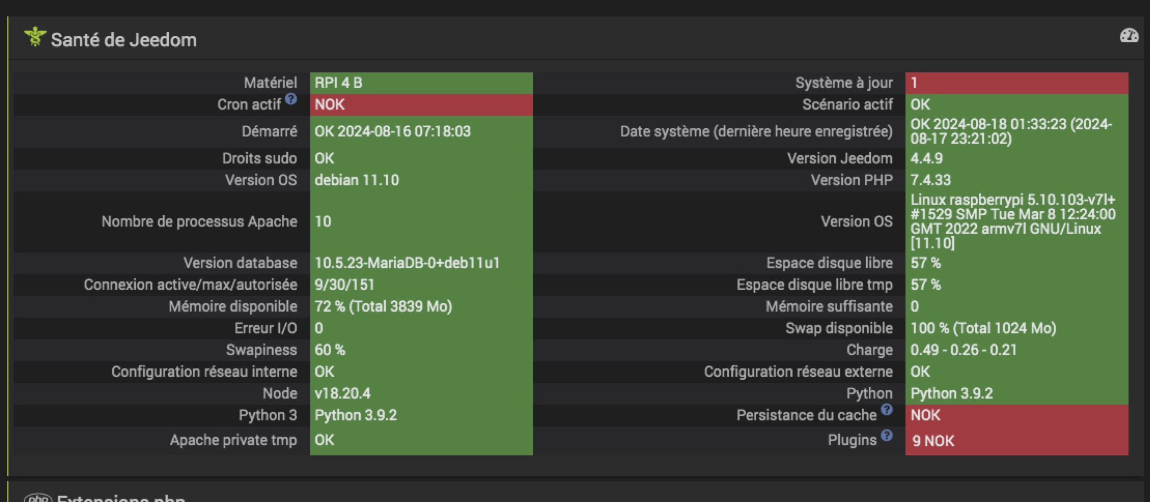 De plus, la page santé indique sur les CRON ne sont pas actifs, regardez dans la page : moteur des tâches, que le moteur soit bien activé (bouton en haut de l’interface).