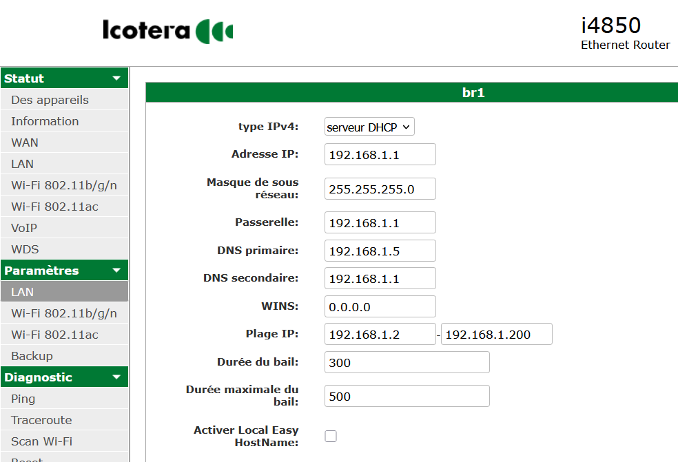 Par défaut, la carte réseau d’un Jeedom est en DHCP. Elle prend ce que lui offre le routeur.