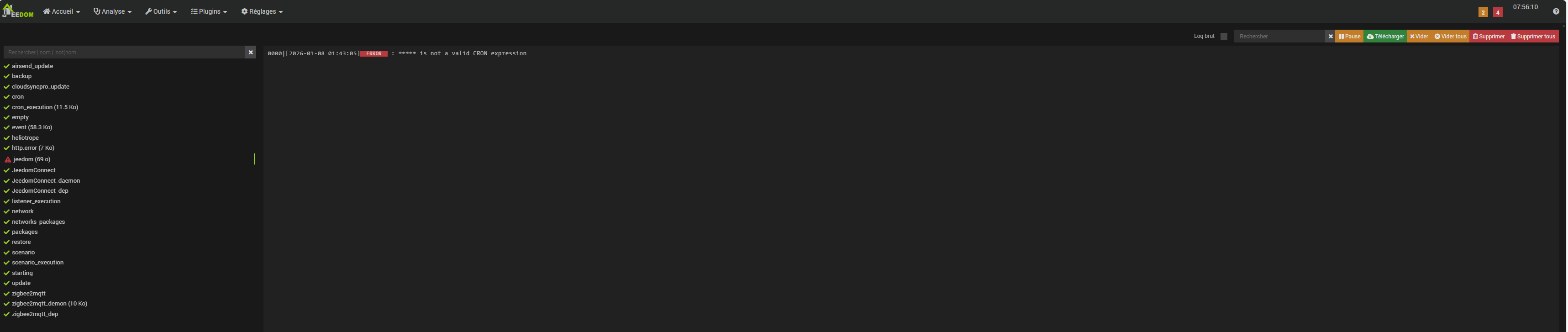 J’ai donc créé un scénario de test (JEEDOM, plus de démarrage programmé - #11 par Jeff_62100) qui est sensé se déclencher toutes les 5 min, mais rien ne se passe, le scénario ne se lance pas.