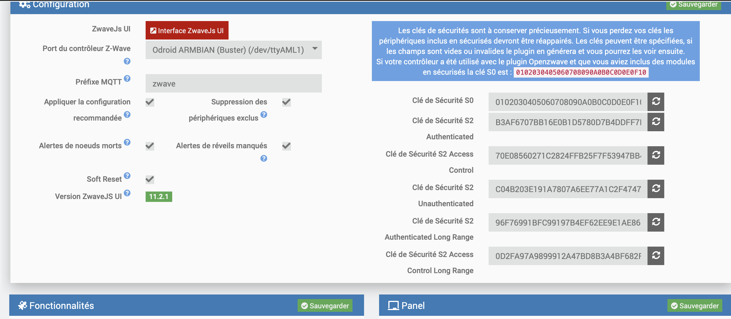 J’ai finalement reflashé ma nouvelle eMMC et recommencé entièrement la procédure, en veillant bien cette fois à configurer correctement le plugin zwave JS et en particulier la clé de sécurité S0 car c’était ça le problème. Mes modules Fibaro avaient initialement été intégré en sécurisé S0.