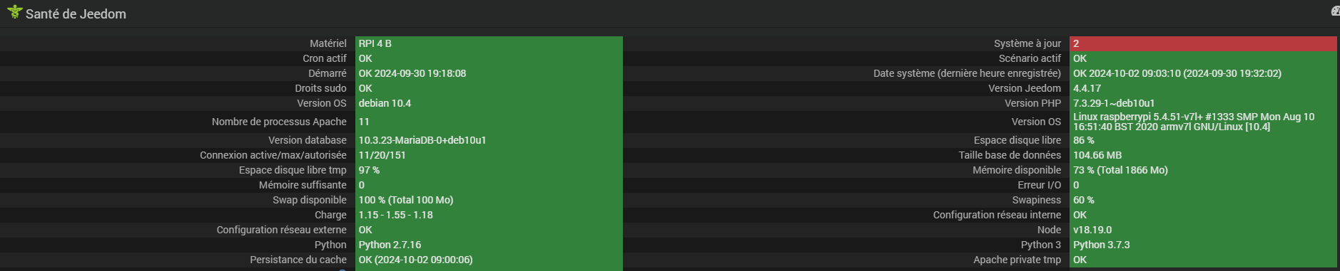 Vu cela, je lancerai une vérification de la base, un rétablissement des droits, je fais un backup, je l’externalise et j’installe debian 11, jeedom et je restaure