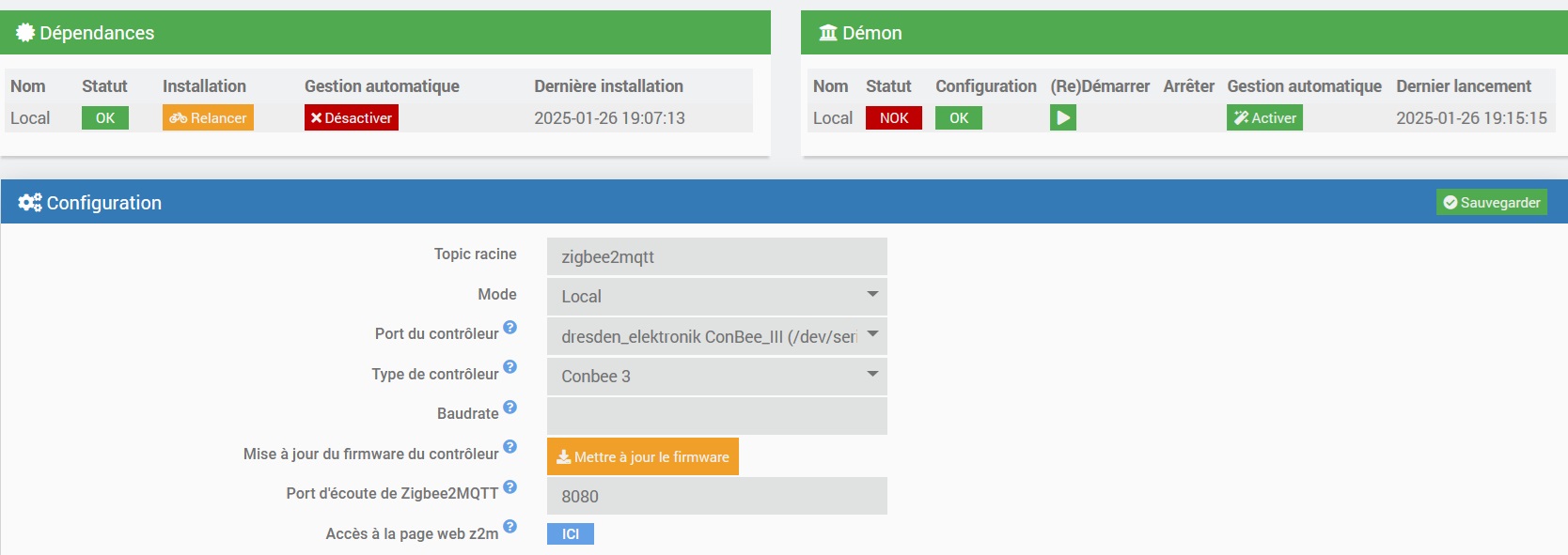 J’ai re installer les dépendances et depuis j’ai le demon sur NOK au bout d’un petit moment.