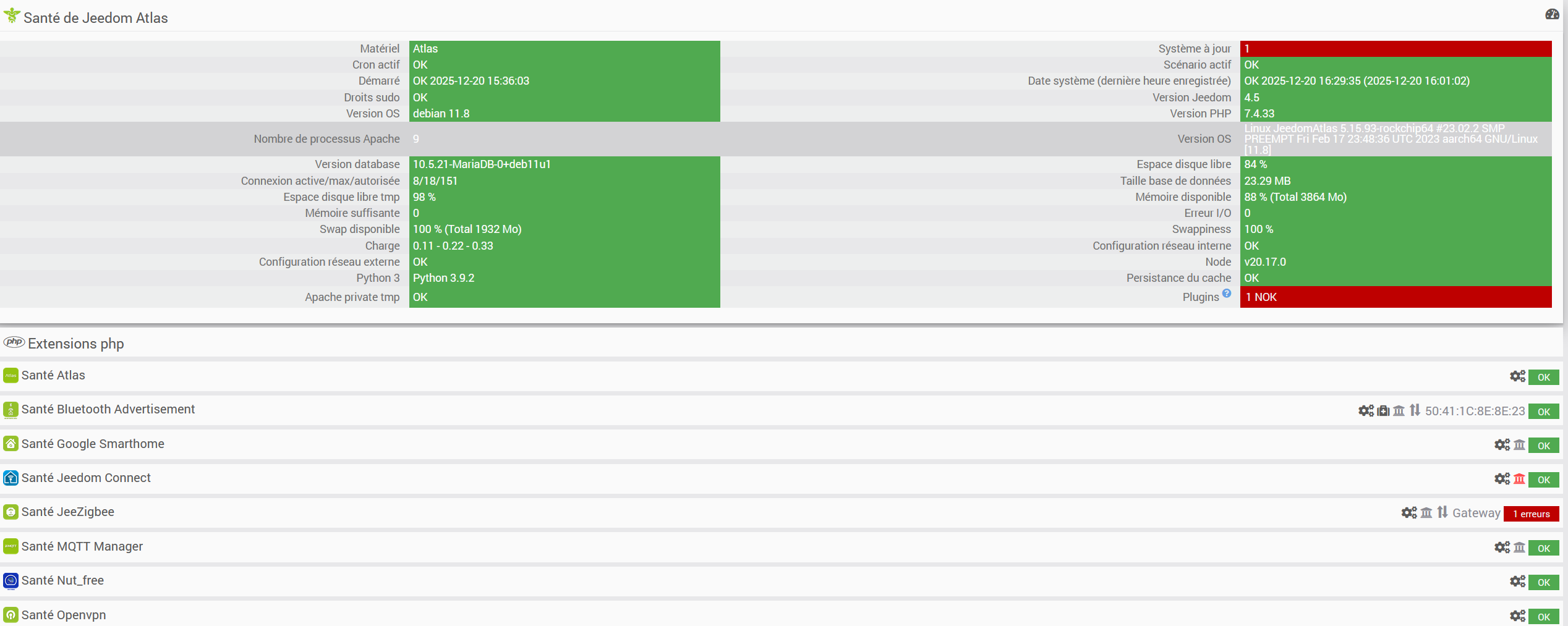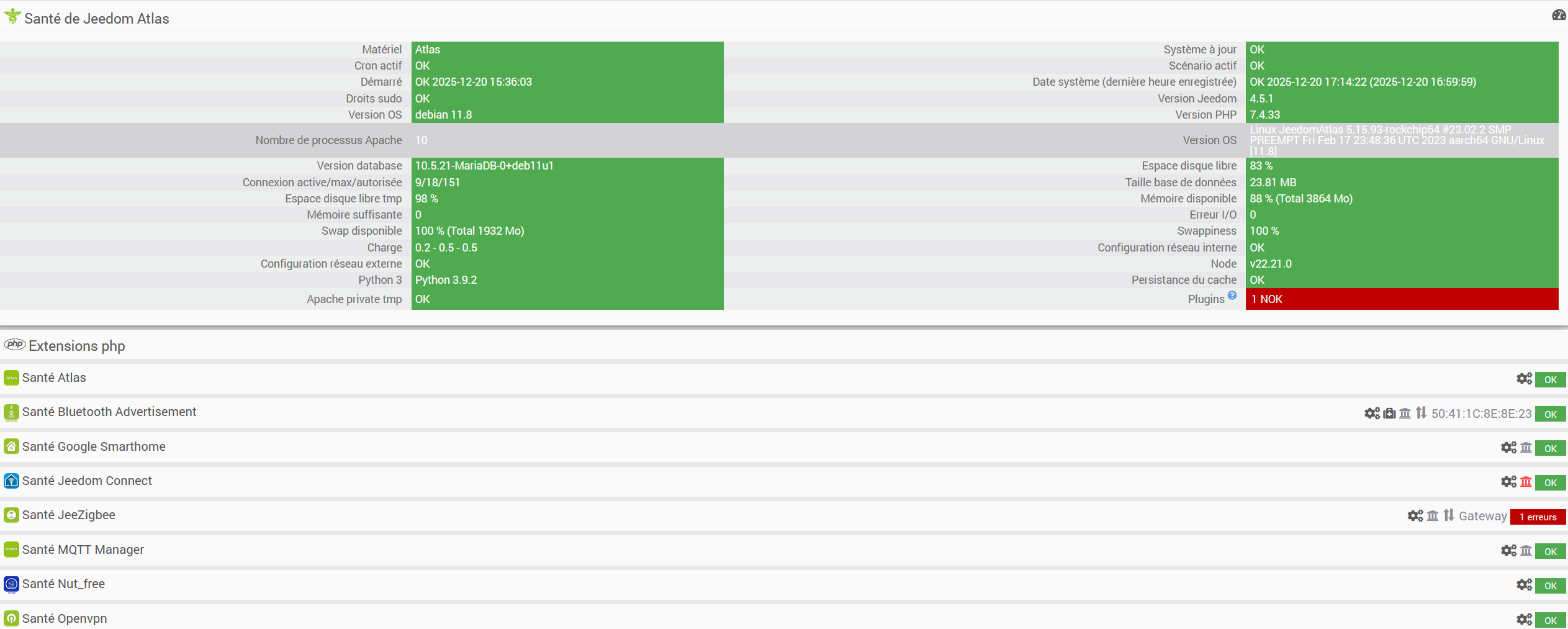 J’ai voulu installer, sur ma box ATLAS l’adaptateur szlb-06M. Depuis, le plugin Jeezigbee affiche le statut NOK et naturellement plus aucun module ne répond.