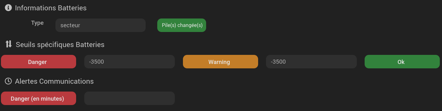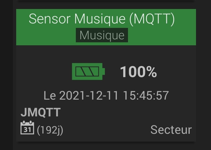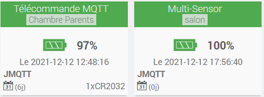 Le ‹ multi-sensor › je n’ai pas renseigné sa pile parce que je ne la connais pas, donc il apparait par défaut, mais tous ceux que j’ai renseigné ‹ Secteur › ne sont pas affiché. Je suis sur la version beta du plugin jmqtt, peut être une nouvelle fonctionnalité ?