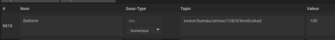Il suffit juste de mettre une commande en type « Batterie » ou mettre « batterie » dans le nom d’une commande et à la prochaine mise à jour de la valeur, le statut de la batterie remontera ![]()