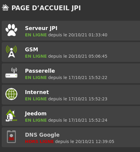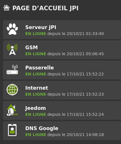 Celle ci renvoie le statut via un tag #status dans un scenario Jeedom