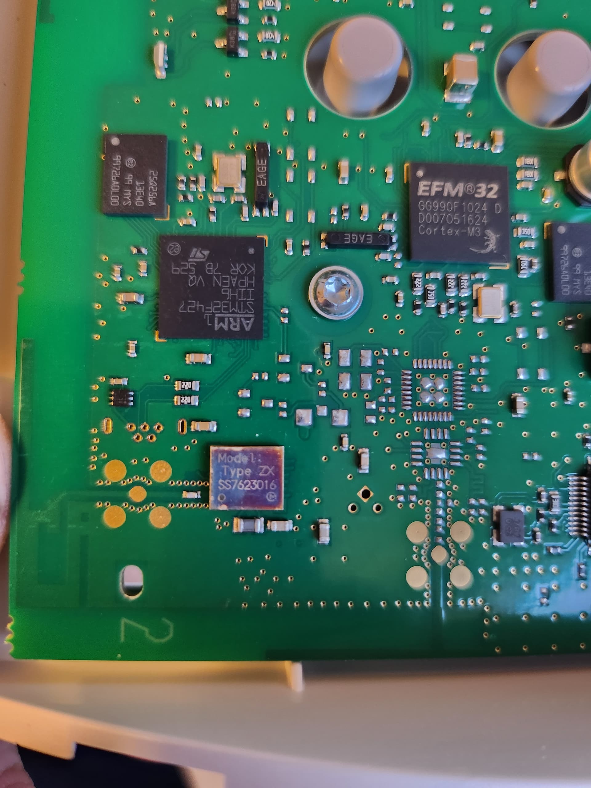 Je viens d’ouvrir la bête afin de faire un check visuel. Un composant, qui je pense doit être l’émetteur/récepteur (simple supposition et déduction car une grosse piste qui fait office d’antenne je pense passe en-dessous) a l’air d’avoir souffert… ce qui expliquerait aussi ce comportement.