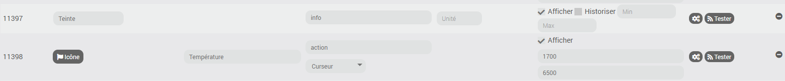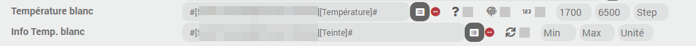 Lorsque je les ajoute à Jeedom connect (widget lumière de couleur) tout fonctionne sauf le réglage de la température (teinte).