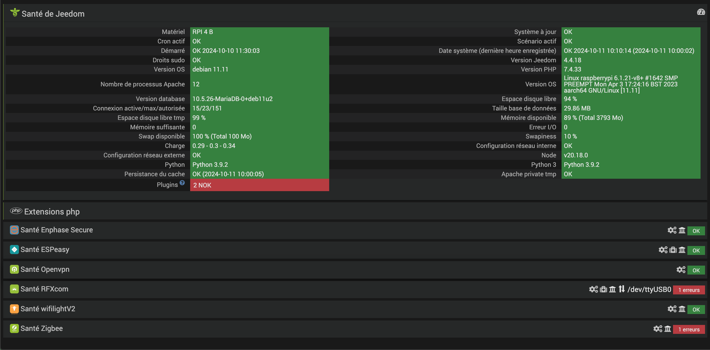 Suite à plantage disque dur j’ai Reinstallé Debian 11 (Bullseye) et restauré Jeedom, mais impossible de lancer les demons RXFcom et Zigbee
