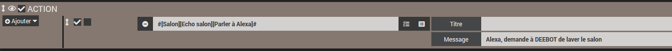 Je souhaite donc passer par les scénario Jeedom et simplement faire parler Alexa pour lancer l’aspirateur :