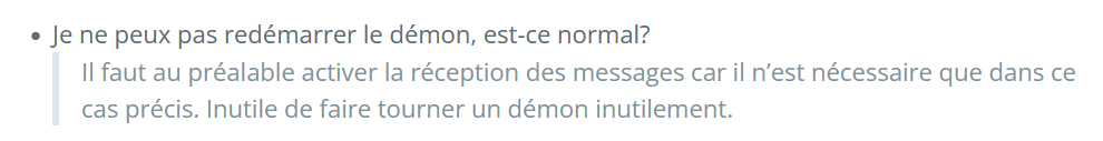 Le démon est en statut NOK, pas de bouton (re)démarrer. Cela fonctionne tout de même. Est-ce normal ?