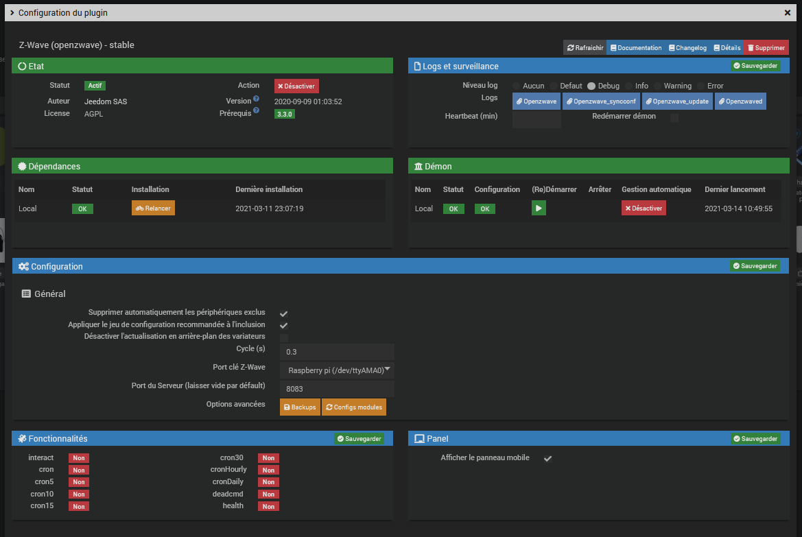 Que disent les logs en debug? S’ils ne sont pas déjà en debug, il faut sur la page de configuration du plugin openzwave, passer les logs en debug puis sauvegarder et enfin relancer le démon.